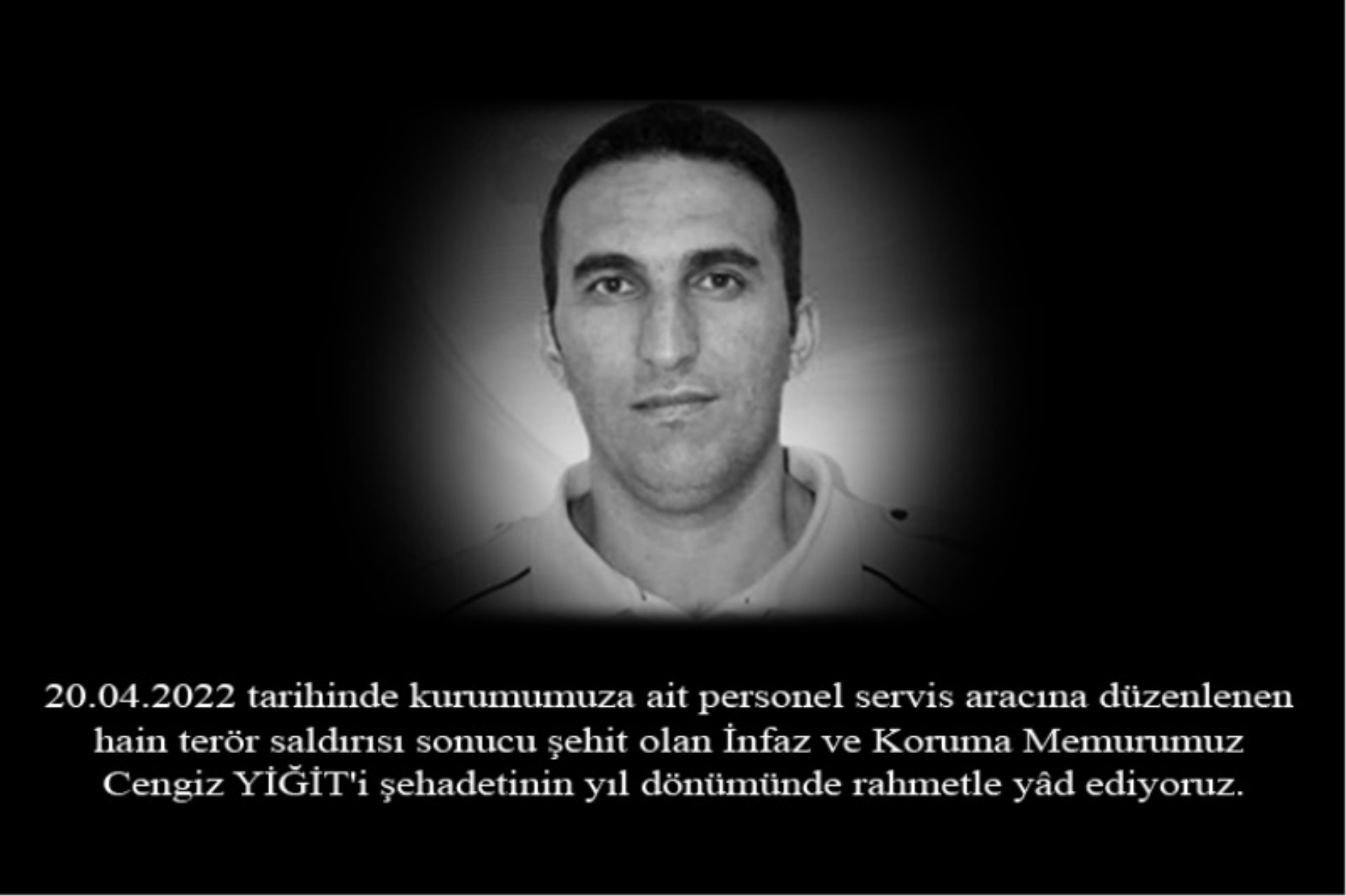 20 Nisan 2022 tarihinde Bursa’da personel servis aracımıza yapılan hain terör saldırısı sonucu şehit olan İnfaz ve Koruma Memurumuz Cengiz Yiğit anısına düzenlenen anma programında duygusal anlar yaşandı.